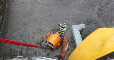 Des plongeurs à la STEP de Baulne